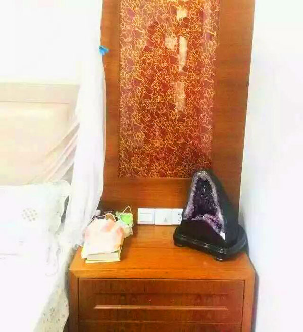 注解:紫晶有安定心神的作用,常见的还有紫晶枕头、紫晶床垫,都是促进睡眠;同时,对卧室风水的改善,能促进夫妻感情和谐,也可提升单身者的桃花运。
