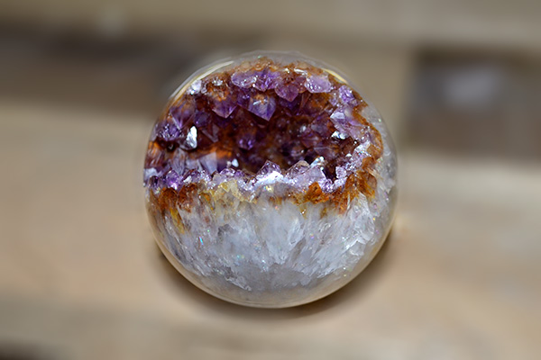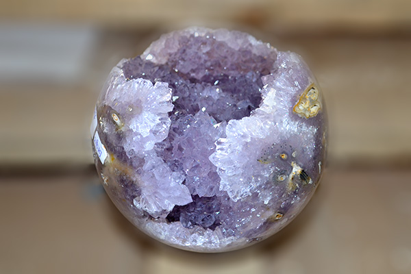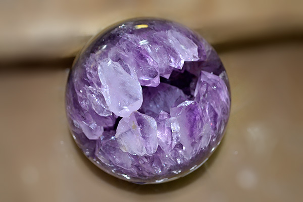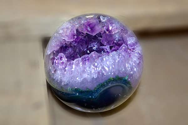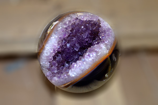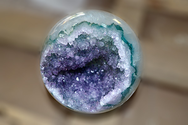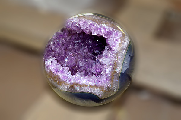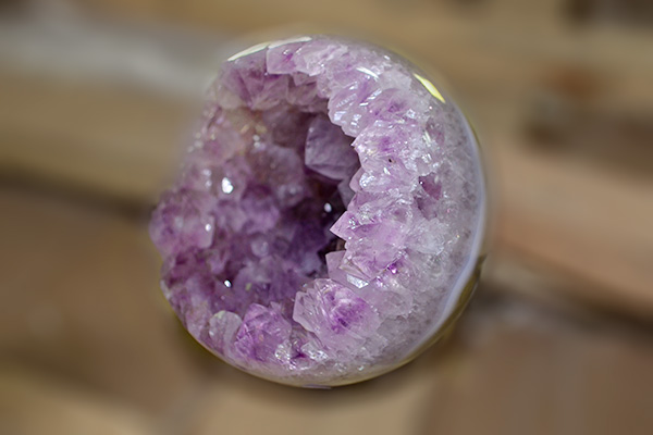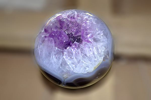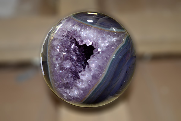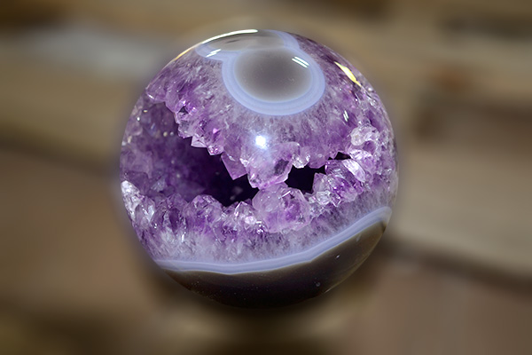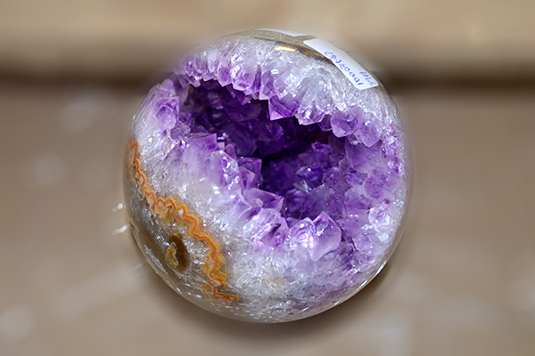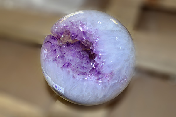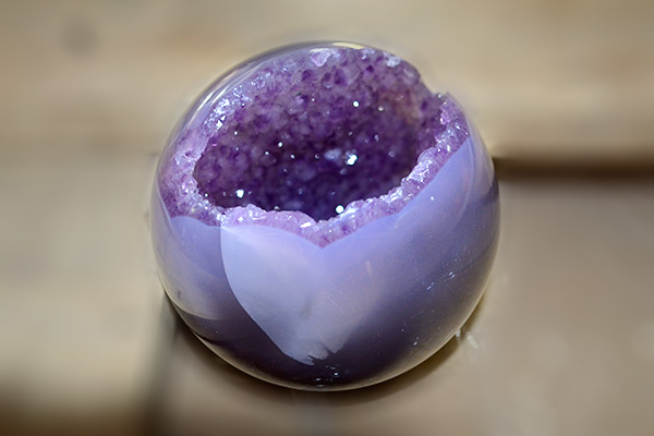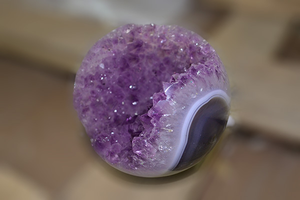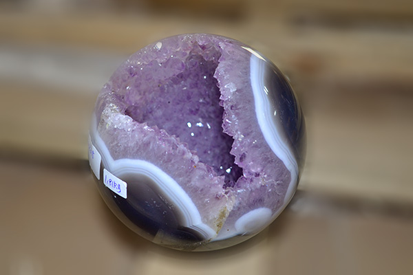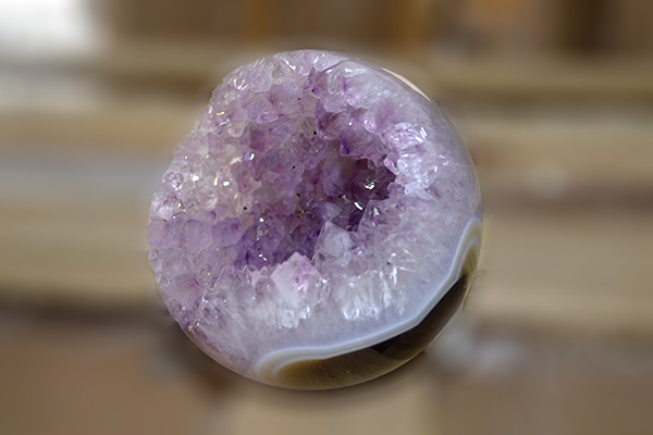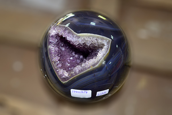 这种紫晶钱袋子也叫富贵开口笑,经打磨抛光之后光彩夺目,像极了笑口常开,备受青睐。