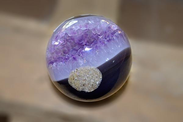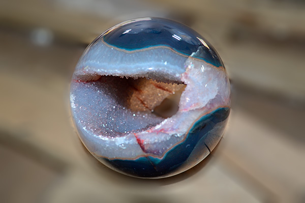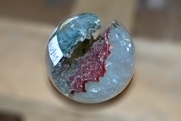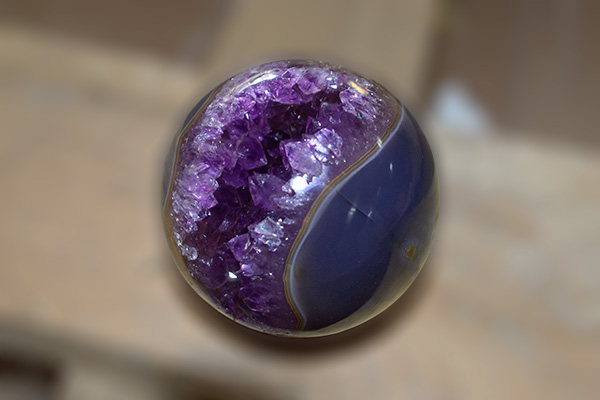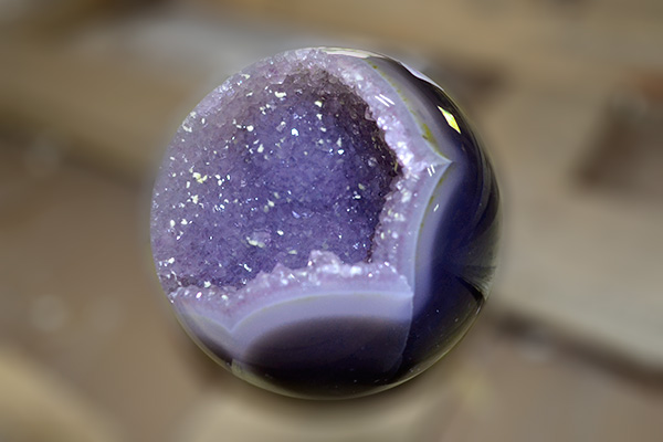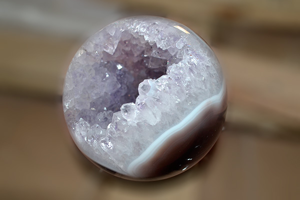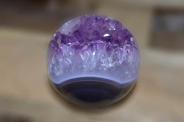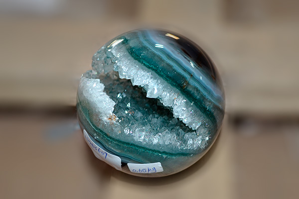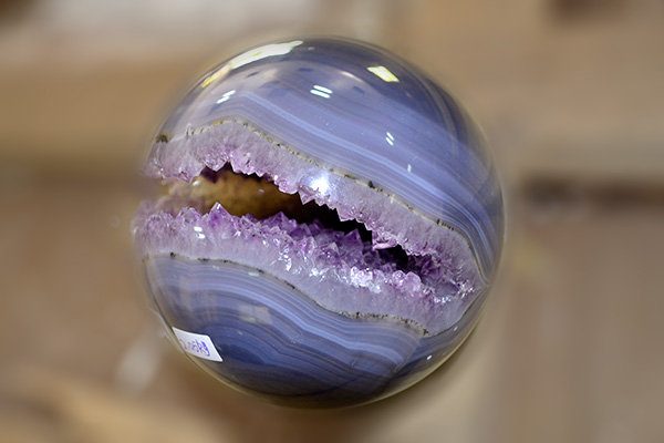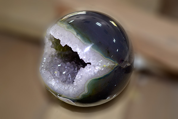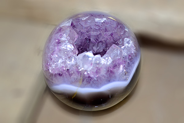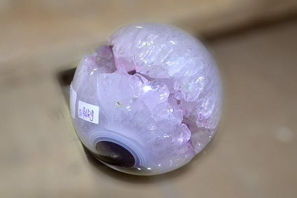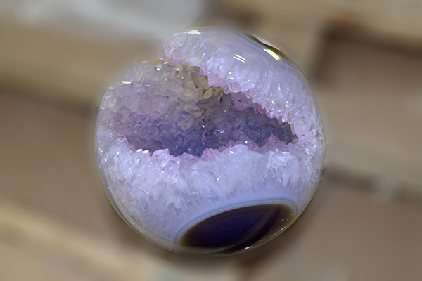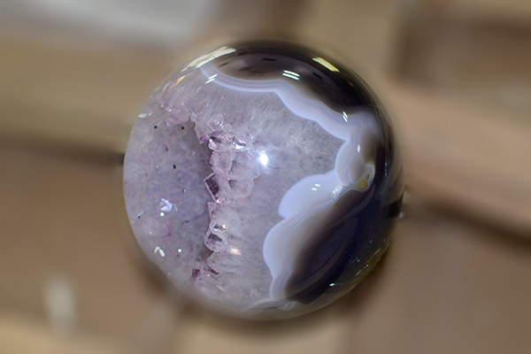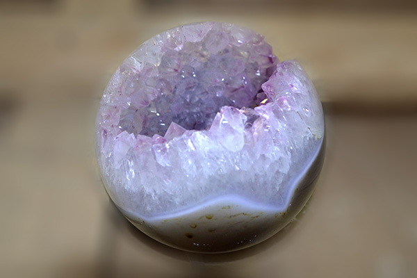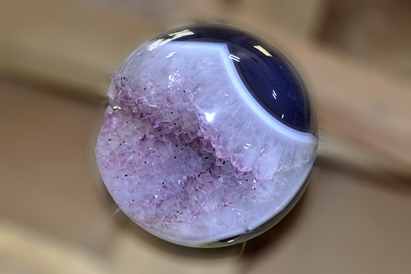 开口笑从艺术性上显然也是出类拔萃,经工艺处理后的成品通体光莹,处处透着珠圆玉润的感觉,玛瑙与水晶体表里相映,配上底座即是观赏性极佳的艺术品摆件。