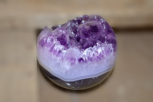 紫晶开口笑是在特殊地质环境下形成的非常具有诱人气质的水晶矿产品,从科学分类体系上与紫晶洞、聚宝盆、雷公蛋、紫晶簇属同一类。