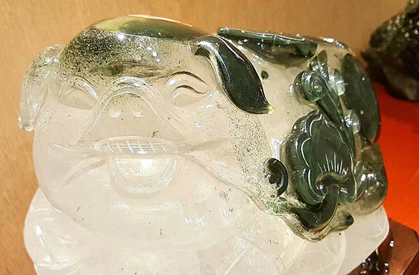 重達60斤的超級大花豬,巨型的綠幽靈水晶寶石礦料,大師用一塊有靈性的水晶石雕出了一只有靈性的豬,看著它如此可愛忍不住摸了又摸……!沒辦法,友阿澳門街為了迎合超級玩家竟然決定以成本價示人,我真覺得沒必要啊!!!此豬一出,大把前途!