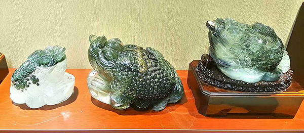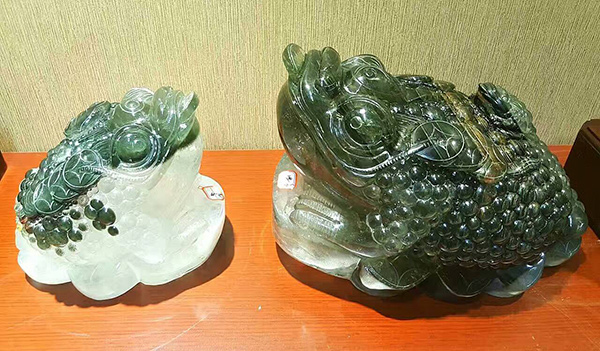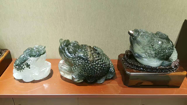 金蟾家族,一家三口,三件巴西巨型綠幽靈水晶礦料加一起超過一百公斤!同一礦點出土,幾億年前就是一家人,永不分離!友阿·澳門街大手筆決定以接近成本藏品價請一對金蟾夫妻送一只金蟾寶寶,一家團聚,幸福萬年!!!
