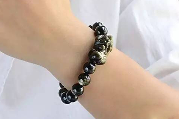 金曜石比黑曜石更为突出优越的一点便是招财的功效,黑色原本极度辟邪,能强力化解负能量,再加上金曜石招财的色泽可谓是相得益彰。