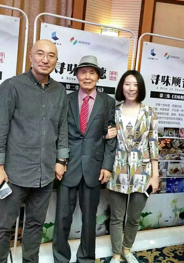 邓伯与《寻味顺德》导演费牖明先生(左)、刘硕女士(右)