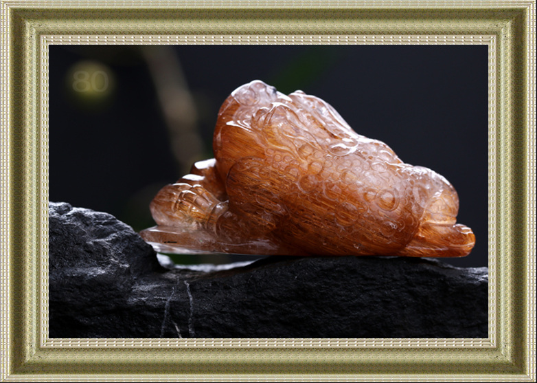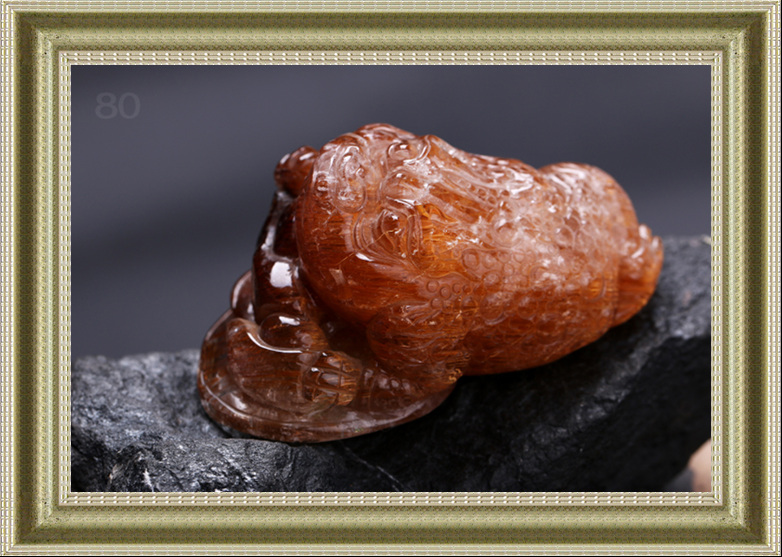 此钛晶貔貅发丝浓密整齐,布满了整个身子,已经呈黄褐色,说明此貔貅招财效果极佳。