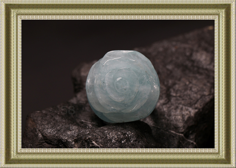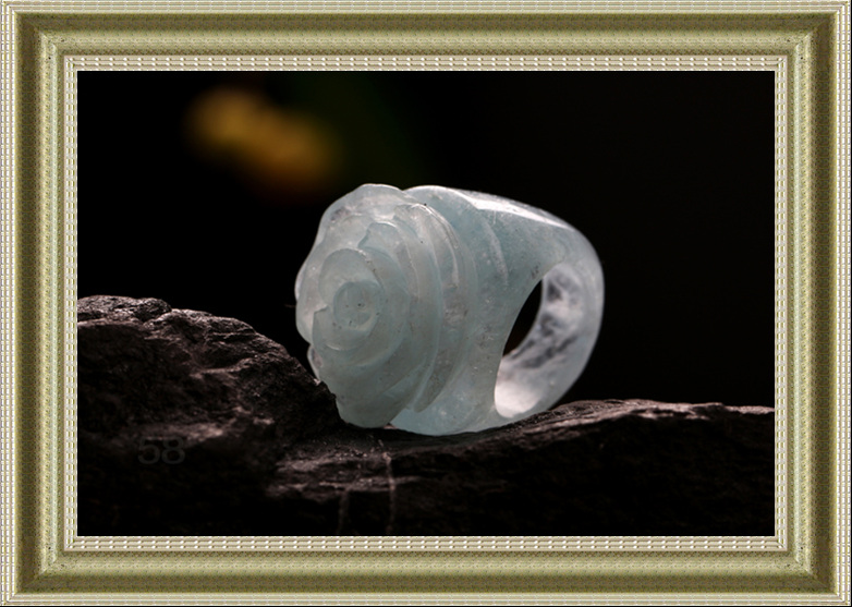 此海蓝宝戒指洁白无瑕,戒面”玫瑰”的造型更是吸人眼球,淡蓝的色彩仿佛告诉人们它来自神秘的大海,来自神秘的美人鱼部落,蓝玫瑰代表敦厚善良,美好浪漫。