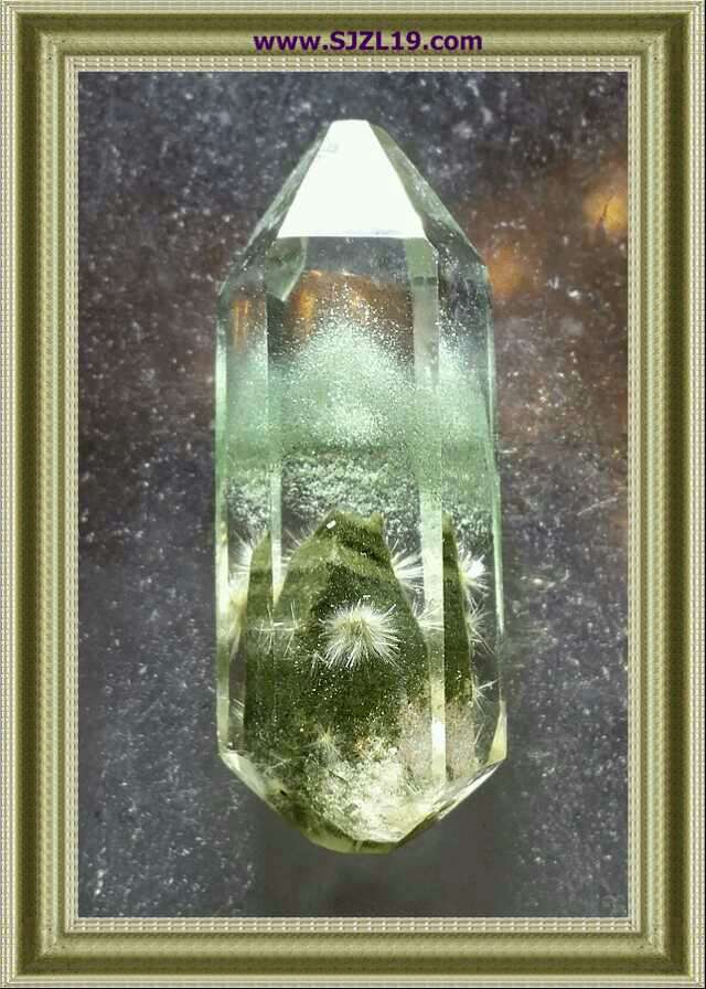 花自飘零水自流:估計衆多玩家和看官絕對沒見過這樣的水晶內景奇石礦標本,花狀的泰金發(二氧化鈦)與綠幽灵(綠泥石)共生礦晶体的巧妙結合,形成一副副大自然無以倫比的雄伟壯觀景象!相信只有仙境中或外星球才能看到的畫面,真實的展现在我们眼前,如此震撼的一幕經過億萬年的千錘百煉濃縮在這方寸之間!唯一的感受就是自己太渺小了,相對于神奇的大自然如此造物弄人。