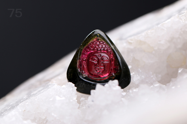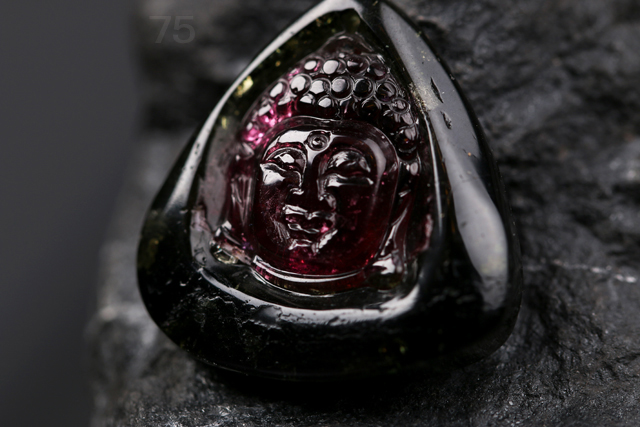 水晶雕刻件与佛教文化的融合,每一尊水晶雕刻都融合当下人与社会的情感情绪,或批判或警醒或提倡,不一而足,希望通过它们能直指人心。如“明镜罗汉”采用阴阳雕手法,融合两个不同面孔自照镜子的罗汉,传递无我则明的思想,忘记自我才能真正看清自己,切勿随波逐流,在人潮的裹挟中丢失本真。
