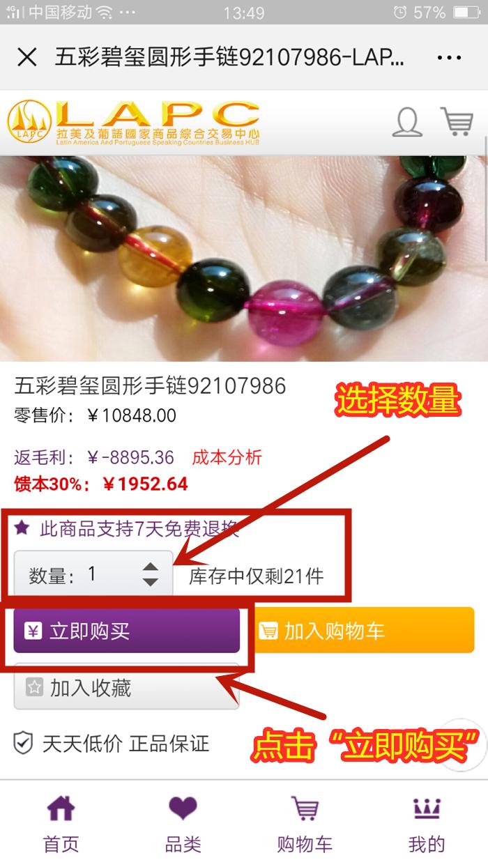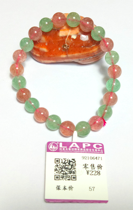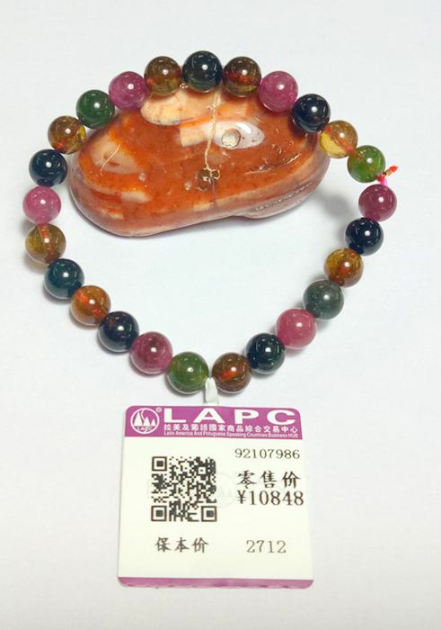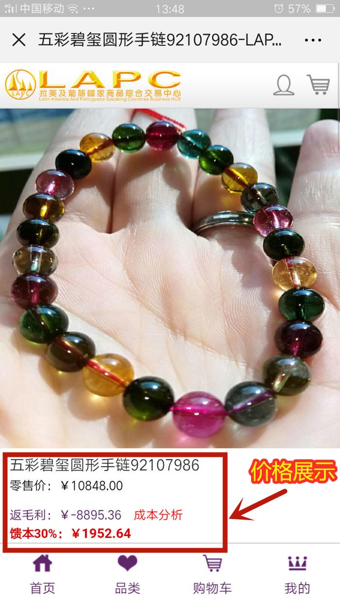 3、通过“微信”扫一扫“五彩碧玺圆形手链”吊牌上的“商品二维码”即可进入“LAPC交易中心”的产品页面。