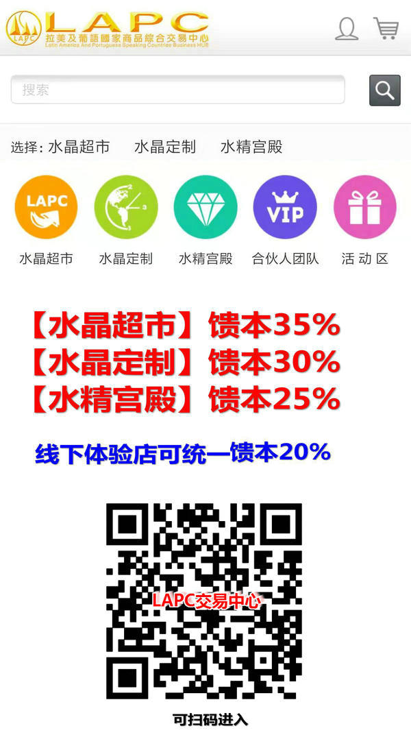LAPC交易中心线上直馈:【水晶超市】馈本35%【水晶定制】馈本30%【水精宫殿】馈本25%