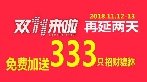 11月12-13日延长两天,加送333只水晶皮丘,再次延续双11购物激情!