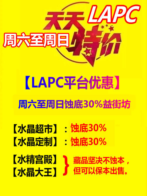 【LAPC平台优惠】:周六至周日保本价蚀底30%益街坊
